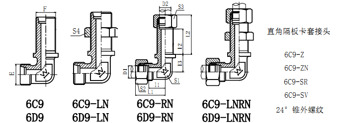 【6C9QJ/6D9QJ】直角隔板24°錐外螺紋/24°錐外螺紋